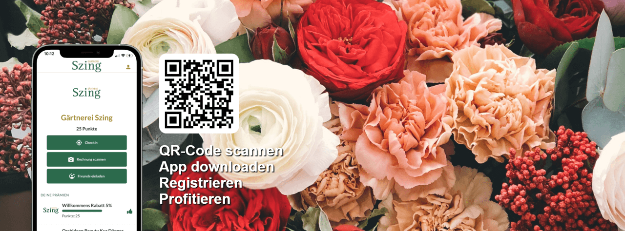 Ob in unserer Gärtnerei in Walkersdorf oder in den Blumen-Szing-Filialen in Hadersdorf am Kamp und Langenlois – mit der App sammeln Sie bei jedem Einkauf Punkte und profitieren von exklusiven Vorteilen.